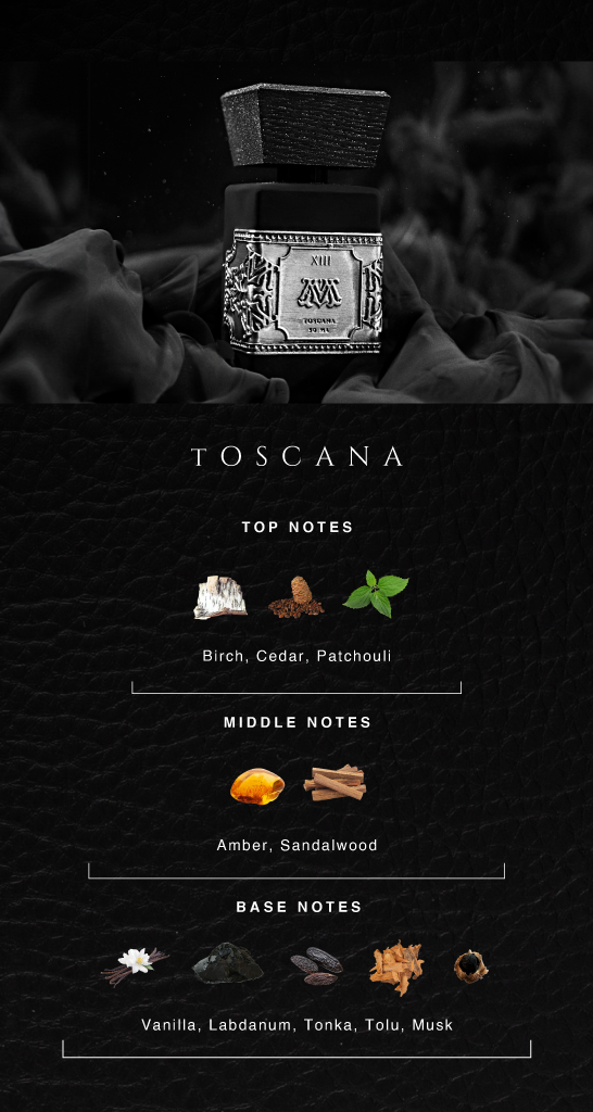 Tuscana has an oriental woody personality that showcases the magic of a region that values its elegance, its vitality, and the harmony of its landscapes.